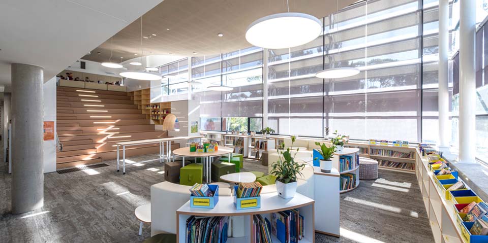 The new building provides 18 classrooms on three levels with a two storey contemporary library straddling a new Covered Outdoor Learning Area (COLA).