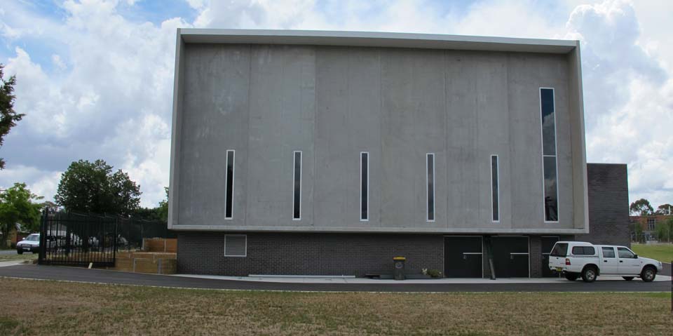The external walls of the gymnasium and the wall ‘pop-outs’ were constructed from 200mm thick concrete precast panels fixed to steel portal frame.