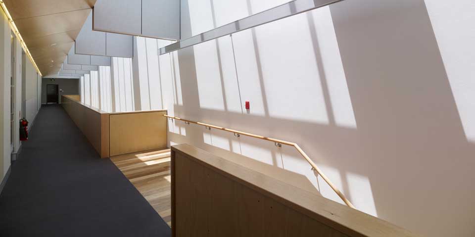 Devoid of fenestration, the ground floor accommodates custody and storage areas, whilst the upper floors contain general office space and staff facilities, enhanced by a sky-lit double height circulation space.